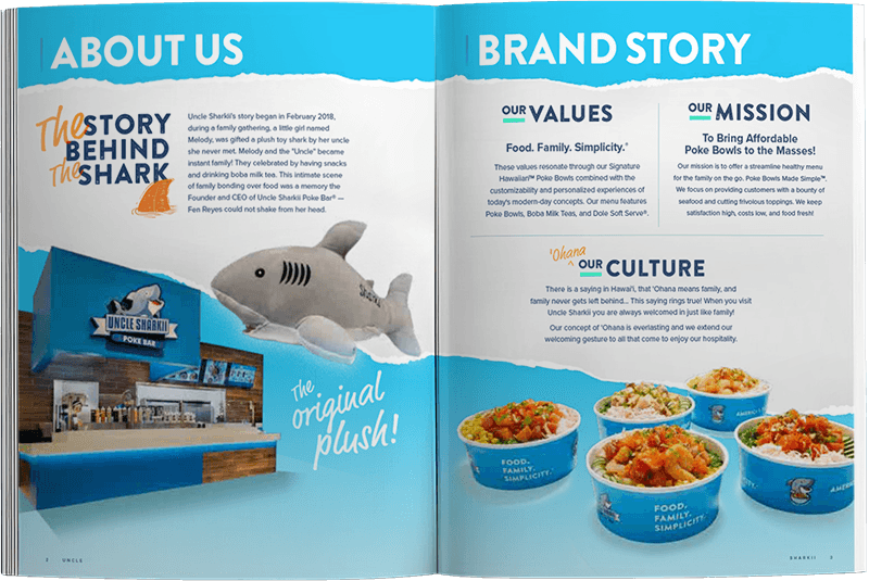 Uncle Sharkii's goal is bringing poke bowls to the masses, while maintaining quality and authenticity. These tenants are what I emulate in all of their designs.